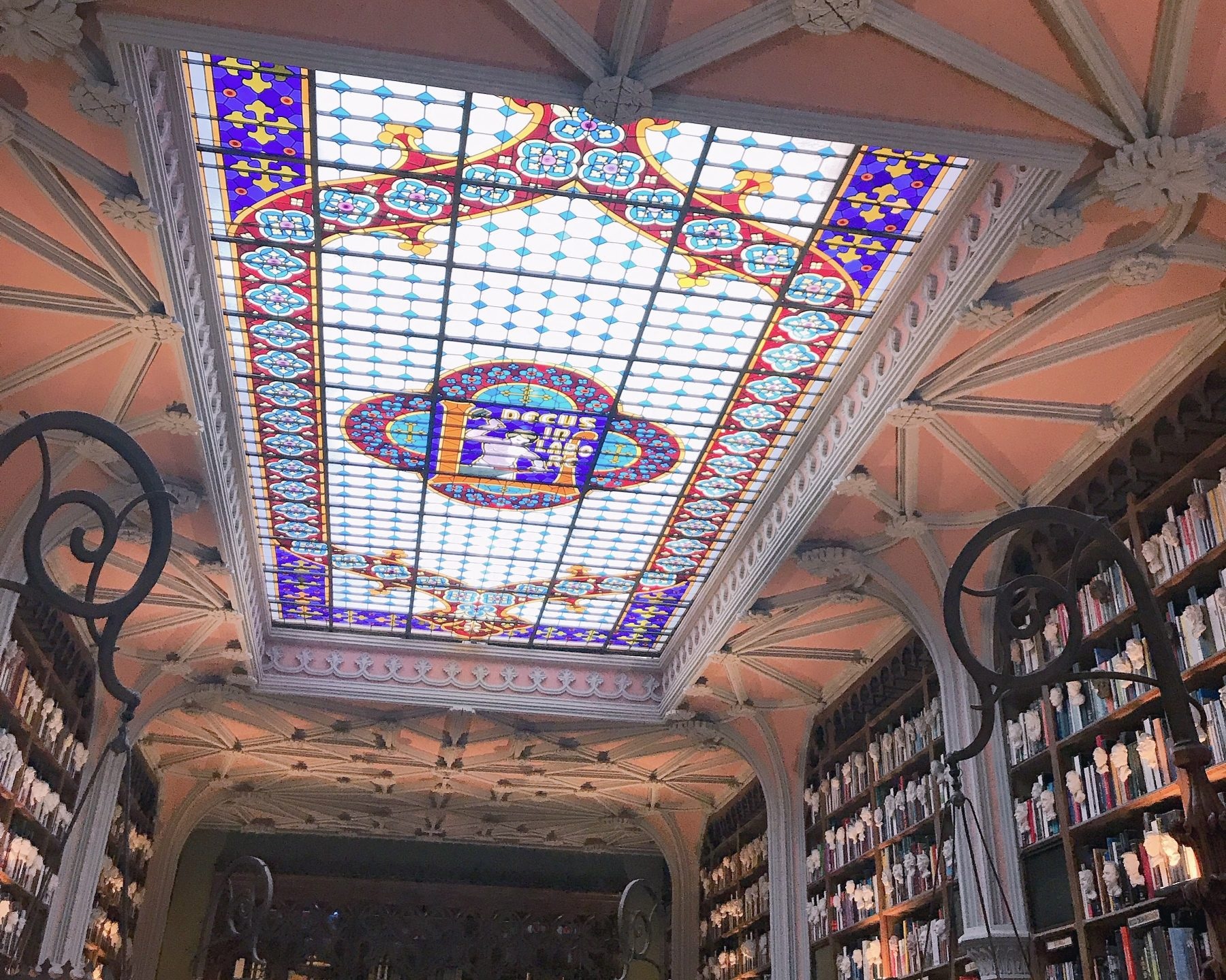 書店売り場は螺旋階段やステンドグラス、歴史を感じる木製の手すりや重厚なインテリア。